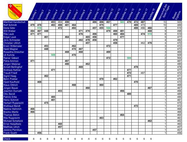 6 x über 500 Holz, tolle Ergebnisse von Doris (2x), Manfred, Rita, Rainer und Uli, nachzulesen bei Freizeitliga/Club der 500er.